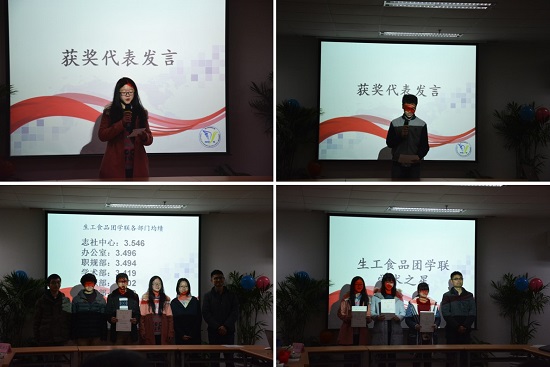总结交流会中,最吸引人的环节就是颁奖了。过去的秋冬学期,团学联涌现了一批在工作,学习方面十分优秀的成员,由此学院决定为他们颁发奖状以示嘉奖和鼓励。会议中,张云飞老师为表现优异的团学联成员分别颁发了生工食品团学联优秀学生干部、生工食品团学联突出贡献奖、生工食品团学联卓越领导力奖、生工食品团学联季度之星奖项。
