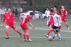 好在生工食品足球队的门将陈帅印发挥神勇,一次次将对方的打门拒于球门之外。第20分钟,生工食品足球队上半场最有威胁的进攻到来。胡雪杨中场得球,快速向前推进,一脚劲射,被门将扑出。但球留在了王伯铭脚下,此时面对门将,王伯铭却没有踢准部位,错失了一次得分良机。很快在裁判的一声哨响下,上半场比赛结束,双方战平,留给生工食品足球队的时间不多了。