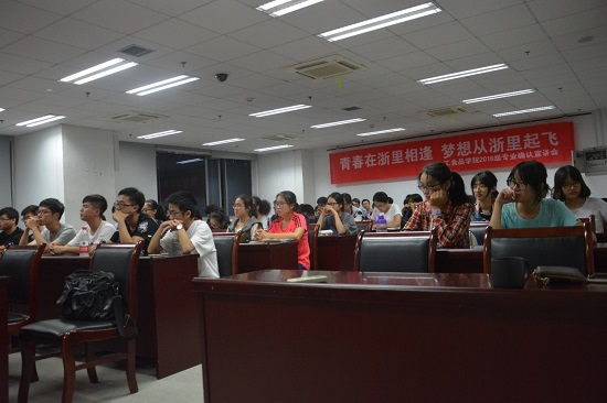 接着,食品系系主任罗自生老师为大家介绍了食品专业。罗老师从食品工业的发展、师资条件、教学培养计划以及杰出人才培养等四个方面为同学们进行了讲解。罗老师着重强调了大家大一一年的学习,希望同学们都能够充分地把大一的时间用于学习,做一个为梦想而奋斗的有为青年学子。