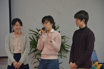 交流会由近藤直教授和bat365正版唯一官网14级杜越超同学共同主持。日方学生代表就日本的英语教育、鱼类的过度捕捞等问题做了展示汇报。宍倉真理等学生关于主题为“English in Japan”的展示引起了大家热烈的讨论,使两国的学生对彼此国家外语教学情况更为了解。此外,川端公貴学生使用流利的中文介绍了他所了解的中国粮食生产情况,展示出了他对学习中文的热爱。