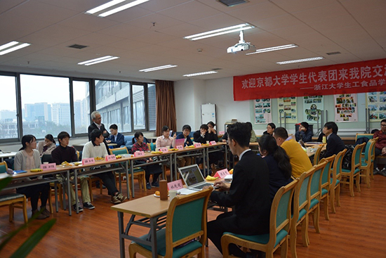 蒋焕煜教授代表学院对京都大学学生交流团的来访表示热忱欢迎,简要介绍浙大以及学院各方面情况,并为客人赠送浙大纪念品。近藤直教授介绍了京都大学学生交流团成员及本次来华交流项目的内容。