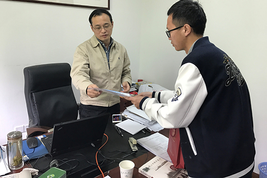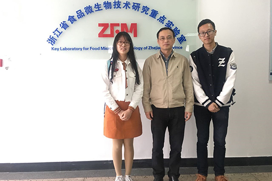 顾青校友热情接待了两位学生代表。在采访交流环节,顾青校友向学生代表分享了他在浙大的求学经历以及之后的深造经历和浙江工商大学的工作经历。顾青校友就读于浙江农业大学(浙江大学前身),1992年大学毕业后在一家研究所,从事食品添加剂工作;98年于浙江工商大学任教,在此期间读取了浙江大学生命科学学院分子遗传学硕士和博士学位,后赴丹麦技术大学生物中心、荷兰Utrecht University进行合作研究,现任浙江工商大学食品与生物工程学院副院长。