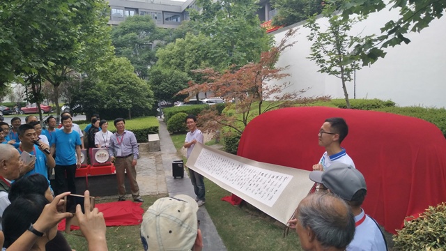 捐赠仪式上,农机系77级校友还向学院赠送了温州特色艺术品—《华家池风光蛋画》以及由池昌荣校友作文、叶骏勇校友手书的《华家池吟》书法长卷,深深表达校友们对母校的深深眷恋和真诚情怀。
