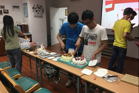 集体生日会环节,班团委为大家献上了班会惊喜——集体庆生会。在1到5月间生日的季柏民、王珂宇、王翔翔、杨逸豪、计淑钰、厉倚豪、吴爱群、崔逸等9位同学分别收到了神秘生日礼物。寿星们表达了自己的喜悦之情并为同学们切好蛋糕,大家一同品尝,家的感觉油然而生。