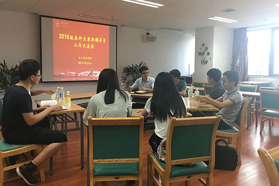 2017年6月8日下午,2016级本科生兼职辅导员工作交流会在农生环D422举行。学院本科生辅导员张云飞老师主持,求是学院选聘的负责2016级本科生的兼职辅导员胡冬雯、常汉、李栋、陆元超、张华、李艺健、王文权、王蒙蒙与会交流。