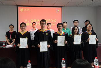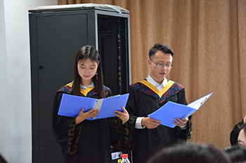 典礼开始,齐唱国歌后,学院党委书记楼锡锦老师宣读毕业生名单及优秀毕业生名单,各位老师为优秀毕业生颁发证书,并向毕业生代表赠送学院精心准备的毕业纪念品。