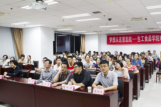 食品系主任罗自生老师为大家介绍了食品专业。罗老师从食品工业的国内外概况入手,提出我国食品产业发展需关注的问题,介绍了我校食品科学与工程学科的概况以及一流的师资条件,讲解了食品专业的培养目标和培养要求。最后,罗老师还不忘叮嘱同学们在大学这样宽松自由的环境中,增强学习上的自律,并且要学习科学、热爱科学。