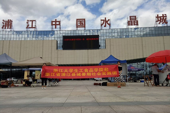 2017年8月,浙江大学生工食品学院赴浦江县暑期社会实践团的队员们来到了浦江县城环保局、浦江县水晶园区、浦江县中国水晶城,了解浦江县“五水共治”的推进情况与对当地经济支柱产业的水晶工业的影响。环保局及水晶园区的工作人员向队员介绍了浦江县推进五水共治的基本工作情况。随后队员们就五水共治推进水晶产业改造、落实“河长制”、发动基层群众联动治水、搭建信息平台推行智慧治水、产业转型等问题咨询了工作人员。