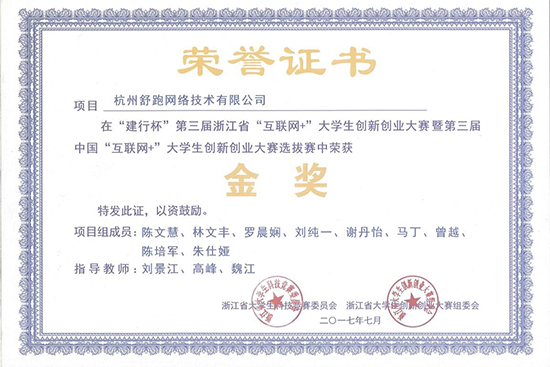 学院15级农工本科生林文丰同学负责的“杭州舒跑网络技术有限公司”项目获金奖(林文丰为二作);