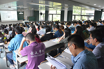 党委副书记费兰兰老师为大家作就业指导。费老师从自己十二年的辅导员经历讲起,分析了当下的就业形势,以及毕业生们择业标准和心态的变化,并介绍了bat365正版唯一官网2017届毕业生的就业情况。她表示对生工食品学子充满信心,希望大家理性选择工作,并强调重视家国情怀、服务国家社会。