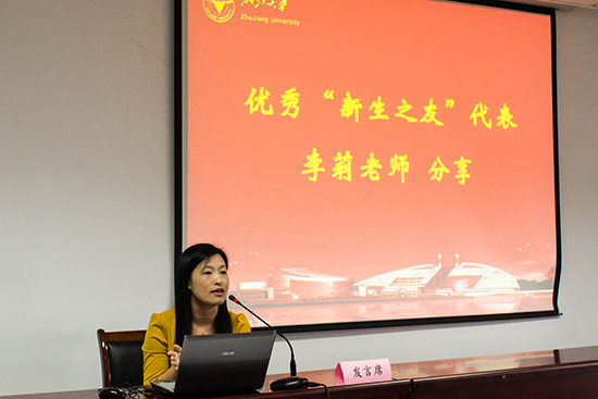 “学生入学时注重学习、生活、身体、心理、人际关系的转变,老师们可以从一开始就让同学们思考自己的大学生活和自己的梦,多为同学们找优秀学长姐给予帮助。”2016级新生之友代表李莉老师在分享中将这些宝贵经验分享给在座的新生之友,也劝勉同学们努力学习、砥砺前行。同时,李老师对于同学们在这个季节遇见了优秀的新生之友、人生导师表示了祝贺,她相信在之后的学习生活中,同学们能够与在新生之友的帮助下,不断进步,健康成长。