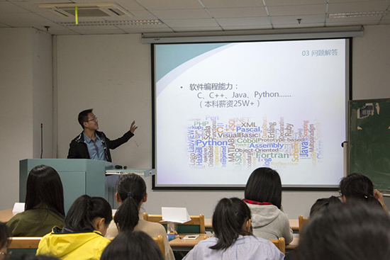 由于同学们之中有不少考虑换专业或者跨专业发展的,学长学姐们建议参加辅修班或者辅修相关课程,多接触自己感兴趣的专业,不要被目前“专业”的框架局限了视野,不论什么专业都可以尝试商赛、数学或物理竞赛等。大学要多尝试,“想到什么做什么”,才不会留下遗憾。班级也有许多同学想出国交流或者毕业后出国深造,林涛老师和学长学姐们认为托福雅思等外语考试可以尽早开始准备,优秀的学业成绩当然也是必须的。江昊学长是完成我校与美国伊利诺伊大学香槟分校(UIUC)3+2的项目后回校攻读博士的,他认为UIUC的学术氛围很好,选课很自由,但在浙大每个学生能得到的资源更多,同时与导师的交流更加密切,这都对以后的发展有很大益处。