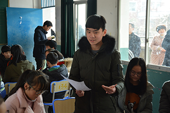 孔先国在上完课之后说:“我觉得这次的冬令营除了能更让我了解到中国农村初中的模样之外,还更让我学会怎么样去跟那些同学交流,或者说怎么样从那些害羞的孩子们当中能够吸引他们的注意力让他们不犹豫地跟我交流。我也希望告诉孩子们只要有理想,并为之努力就可以达到目标。”