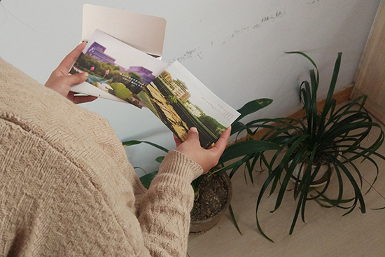 我第一次到雪儿家时,雪儿正和奶奶一起洗碗。北方的冬天寒冷刺骨,雪儿家里却没有暖气,她的小手冻得通红,让人十分心疼。尽管我已和她的母亲事先联系过,在见到我的一刻,雪儿仍因为缅腆而手足无措。我把准备好的浙大明信片送给了她,她认真地一张一张翻看,浙大的美对她产生了很大的吸引力。