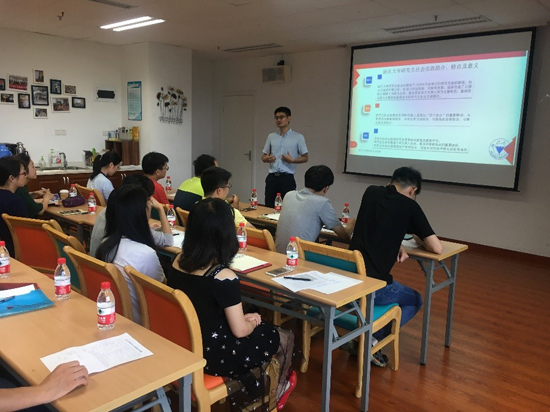 2018年6月29日,浙江大学生工食品学院社会实践院级基地实践团队行前培训会在学院会议室D422举行。行前培训由兼职辅导员胡颀主持,学院党委副书记费兰兰老师作动员讲话,学院研究生辅导员张云飞老师详细介绍了社会实践相关事宜。