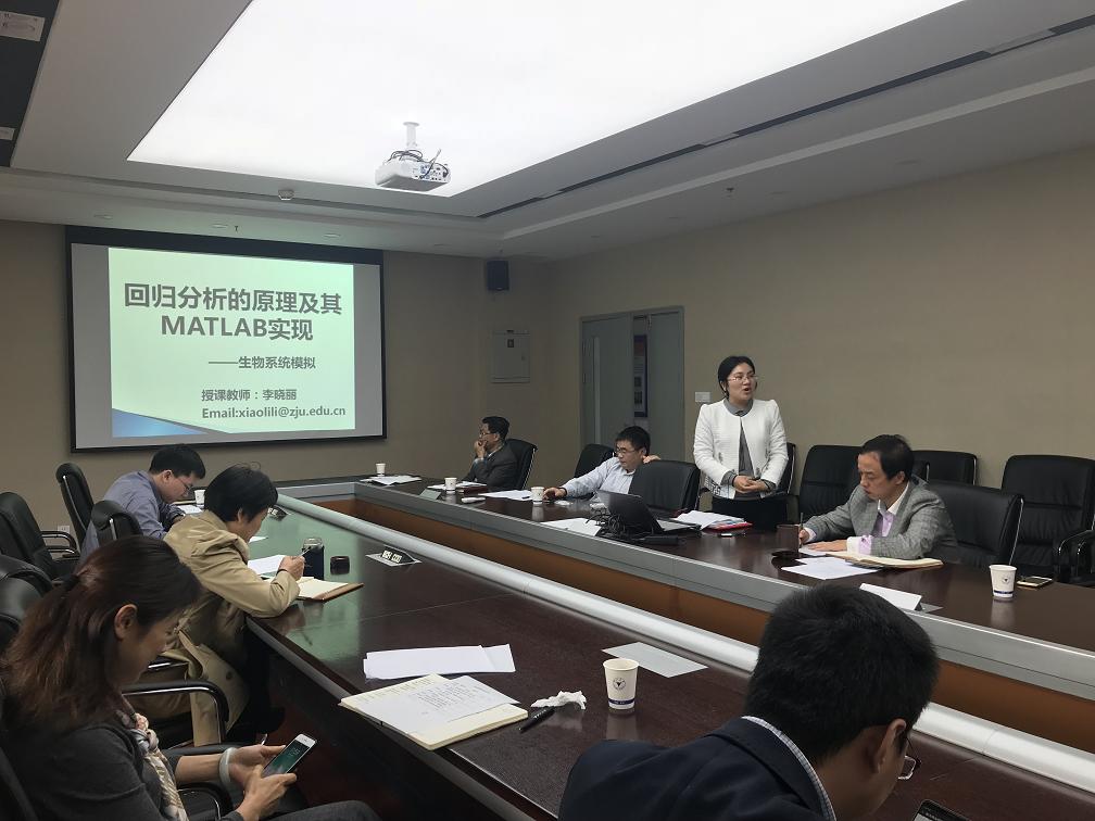 竞赛先由丁甜老师为大家展示其主讲课程食品包装技术中智能包装涉及的TTI(Time-temperature indicators,时间温度指示器)内容,从作用、原理、分类、要求、用途等方面展示了TTI。随后刘飞老师从提问“未来农场是怎样的”开始引入农业物联网体系,并以作物害虫的深度神经网络诊断识别为例介绍了人工智能在农业物联网信息感知的应用。最后李晓丽老师从什么是回归、一元线性回归分析、线性回归的统计推断、多元线性回归及其实现四个方面讲述了其主讲课程生物系统模拟中的回归分析原理及其MATLAB实现。郭鸣鸣、胡亚芹、周振江、刘羽飞四位老师观摩此次比赛。