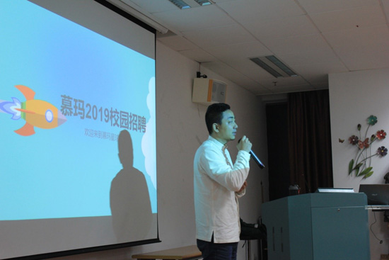 慕玛披萨的项目负责人兼招聘会的主持人吴凯向我们进行了公司介绍,慕玛披萨启用的是餐饮加互联网的新餐饮蓝海市场,公司在杭州、宁波、南京有28家直营店,2015年拿到了绝味鸭脖的天使投资,可以使用绝味鸭脖在全国的24个中央冷链库,解决了供应链问题。之后分别介绍了公司福利、创新产品、工作环境和人才培养等模块。公司的理念是要坚持,不忘初心,以平等和尊重的态度对待食品人,让顾客吃的更好,让伙伴过得更好。同时以自己在互联网工作的经历,讲解了传统餐饮的难点和加持互联网的优势。扩展了同学们对互联网食品行业的认识,同学们也收获颇丰。