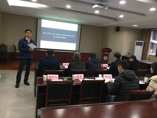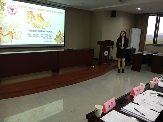 12月5日上午,生工食品学院举行第十六届挑战杯院级选拔赛。学院副院长徐惠荣老师,生工系郭希山老师、叶尊忠老师,食品系张辉老师,实验中心李阳老师出席并担任评委,校团委科技口挂职团干赵文俊和刘妍秋莅临指导,学院团委张云飞和梅玫老师老师参加。