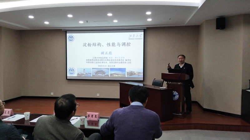 应浙江大学邀请,在杭参加农业农村部农业科研杰出人才及其创新团队高级研修班的部分农业科研杰出人才、专家于12月13日晚专程进校园,为浙江大学师生送来学术大宴。江南大学副校长顾正彪教授、广东省农科院副院长肖更生研究员,中国农业大学食品科学与营养工程学院副院长廖小军教授、中国农业大学李道亮教授等四位专家应邀为学院师生作了专题学术报告,为bat365正版唯一官网师生奉献了一场精彩纷呈的学术大宴。报告会由学院院长助理陆柏益主持。