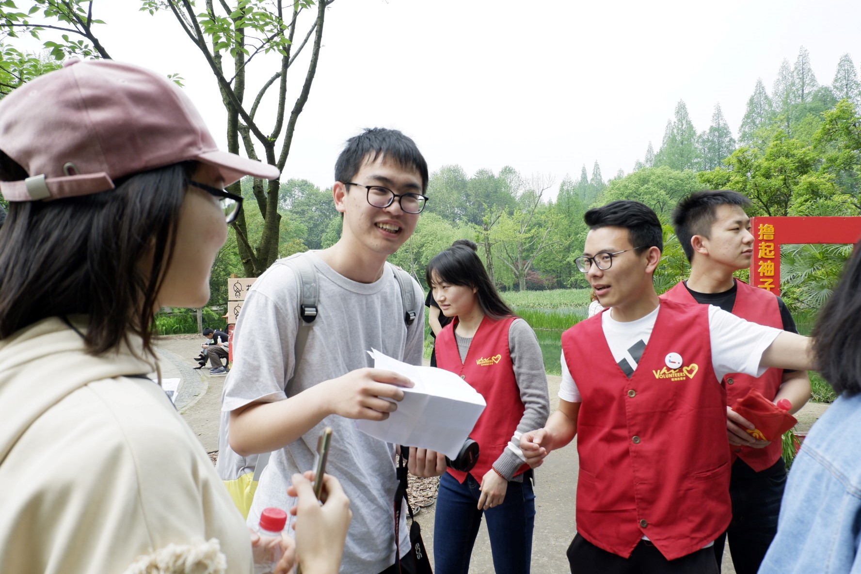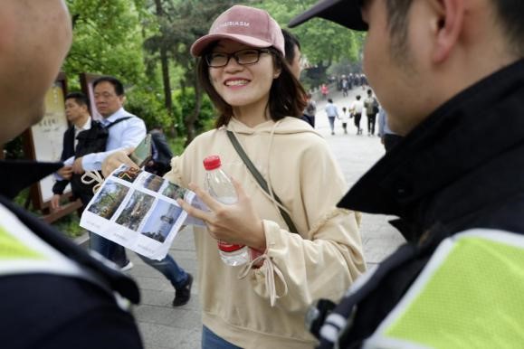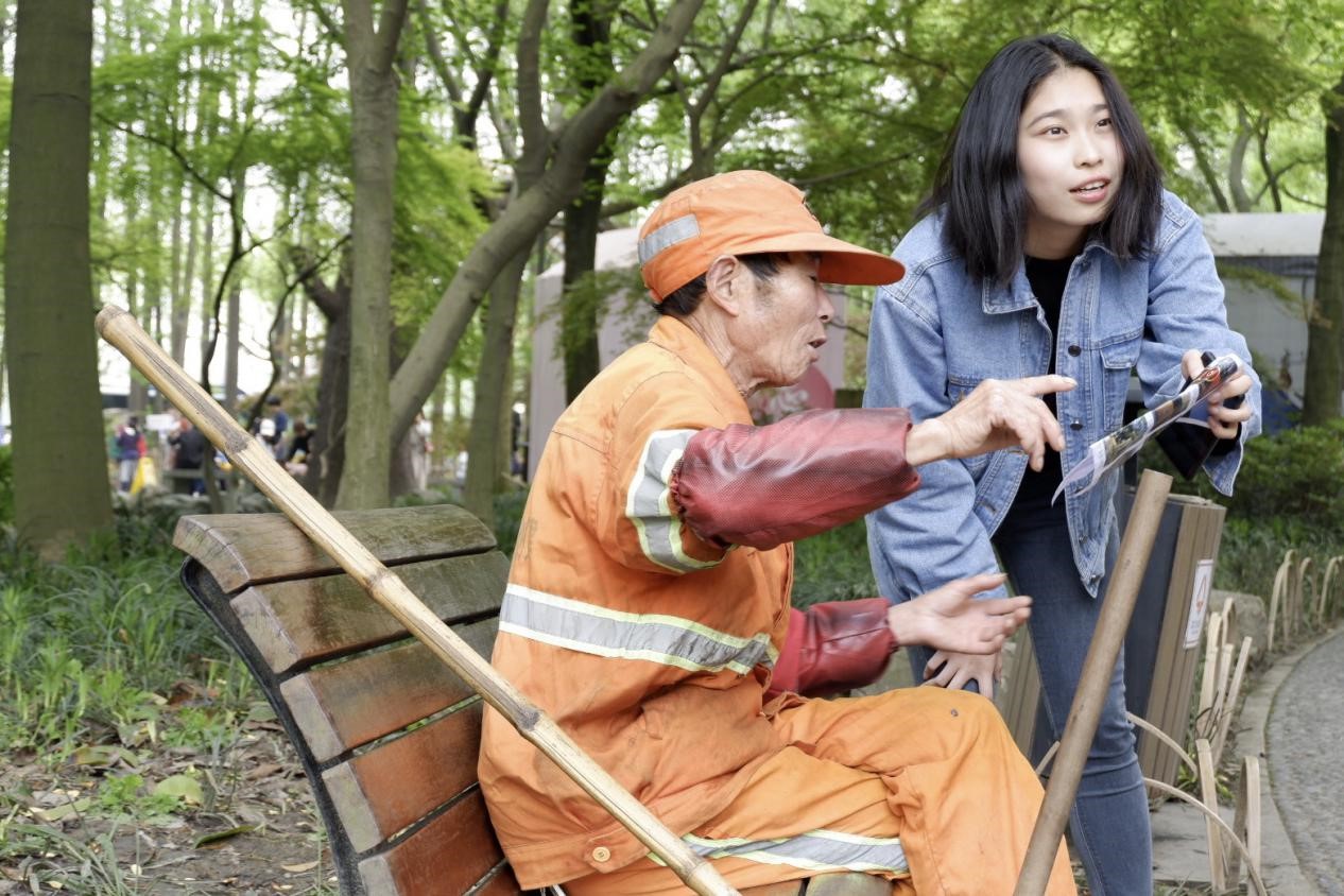 了解活动规则后,同学们陆续出发。在经纬度位置和照片的指导下,不少同学积极询问公园志愿者、保安等工作人员。在工作人员的帮助下,同学们获得了有用的线索,并直奔目标。