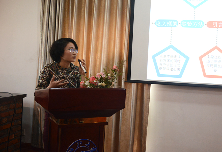 第一位分享嘉宾是来自生工食品学院的邓伶俐学姐,曾两度获得国家奖学金,并发表SCI论文12篇。邓伶俐学姐以“认真完成自己的每一个角色”为主题展开分享,首先就其研究内容“静电纺丝制备明胶纳米纤维膜”进行简单阐述;紧接着向大家传授其论文写作心得,强调“写论文就是要把一个故事讲好”;最后,她更是分享了自己在“学生、母亲、妻子、女儿”等多重身份间转换自如的诀窍及感悟。