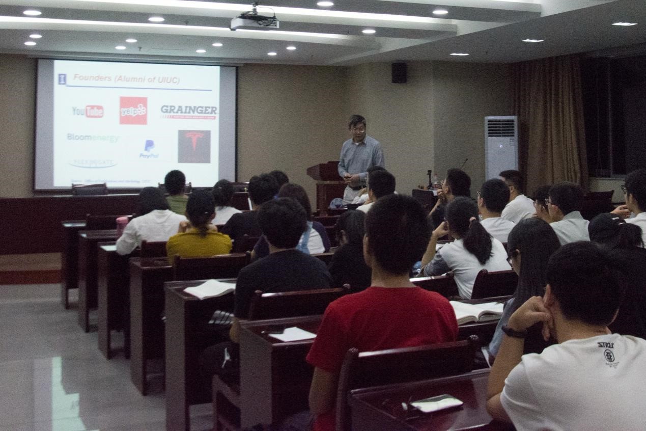 Prof. Wang目前担任美国伊利诺伊大学农业与生物工程系副系主任兼研究生项目负责人,近年来不断推动bat365正版唯一官网与伊利诺伊大学农业与生物工程系“3+2”项目的友好合作。首先,他对伊利诺伊大学的校园全貌、设施、专业、创新研发等作了简要的介绍。随后他提出“什么是工程教育的目标”这一问题,引导同学们就“伟大工程师应具备的十大品质”这一问题展开了深入的思考,并介绍了几个在工程教育领域重要的课题。Prof. Wang还为大家阐明了本科通识教育的重要性,同时也指出,研究生教育更注重专业化和个性化、也更具有研究导向和竞争性的特点。相比本科教育而言,它需要学生投入更多精力、具备更高的时间管理技能。