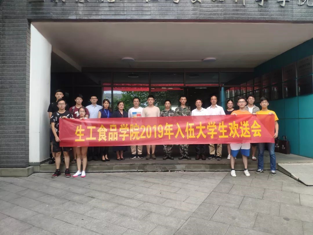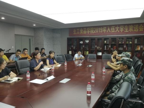 2019年9月6日,生工食品学院2019入伍大学生欢送会于农生环D430举行。学院党委书记王晓燕老师、党委副书记费兰兰老师、团委书记张云飞老师、本科生辅导员梅玫老师及学生代表参与欢送会。学院2015级农业工程本科生官俊飞、2016级农业工程本科生汪建辉和陈雨泽应征入伍。