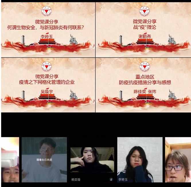 宣传委员李婷玉同志从新冠肺炎疫情出发,较为系统地阐述了什么是生物安全,其与新冠肺炎疫情有何联系,支部党员对生物安全及其相关立法有了更加深刻的认识。谢鹏尧同志则结合《毛泽东选集》,深刻论述了“疫情是一场危机”,“防疫是一场战争”的群众观点,“谣言止于公开、英雄没有编外、主动担责问责、导向积极适度”这四个论点给人以启迪与思考。吴焕宇同志将“网格员”父亲引入党课,带领大家直击一线复工企业现场,让大家身临其境地感受到全国上下,众志成城,坚决打赢防疫抗疫这场人民战争的信心和决心。