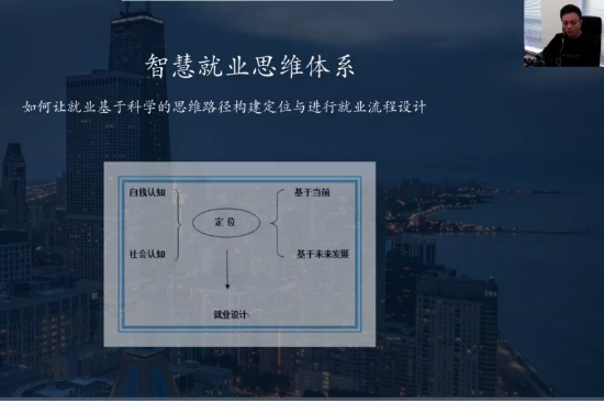 明确大环境后,耿宏强老师对智慧就业三位一体展开详细介绍。在智慧就业认知体系中,鼓励大家通过自我认知和社会认知解决就业困惑。同时以“杭州钱塘新区”,“人工智能起薪”为例,阐明我们的重点是透过现象看本质,只有了解国家政策和发展趋势,才能了解并适应规则。在智慧就业思维体系中,耿宏强老师讲述哈佛大学10年跟踪调查的案例,2%有着清晰定位并付诸行的人,创造的社会财富是其余98%的十余倍,以此简明扼要地指出“定位”的重要性。在智慧就业行为体系中,指出核心是就业竞争力,基于此,耿宏强老师从简历制作、面试应对和个人标签几个角度展开,告诫大家要着眼当前和未来的发展,多关注行业领军人物、前沿资讯。