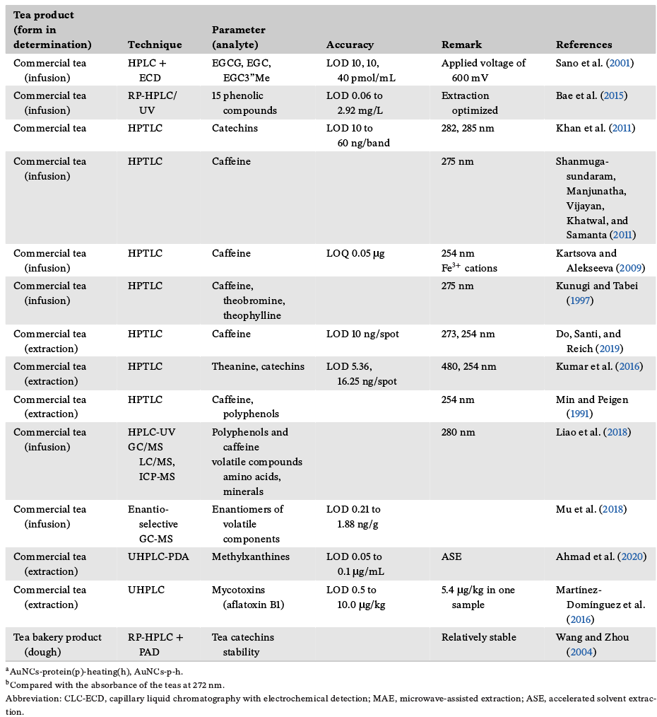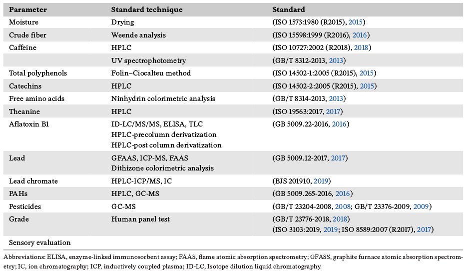 表1:目前用于检测茶产品质量和安全的标准方法