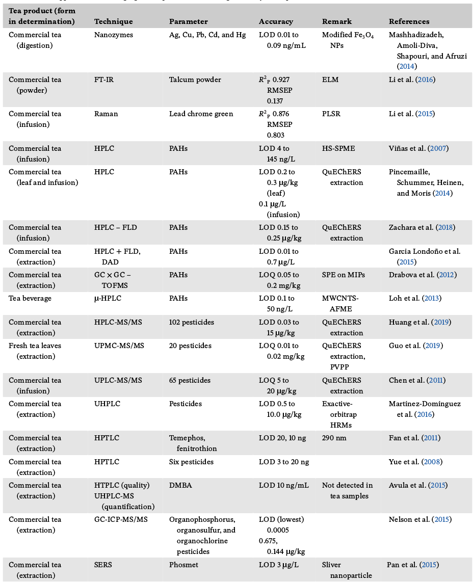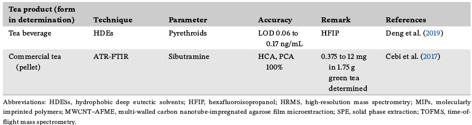 表6:新兴技术在检测茶产品安全性中的应用