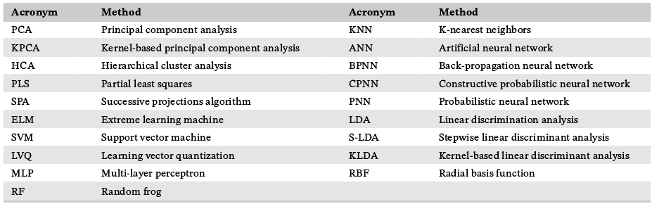 表7:建立模型方法用于检测茶产品质量与安全