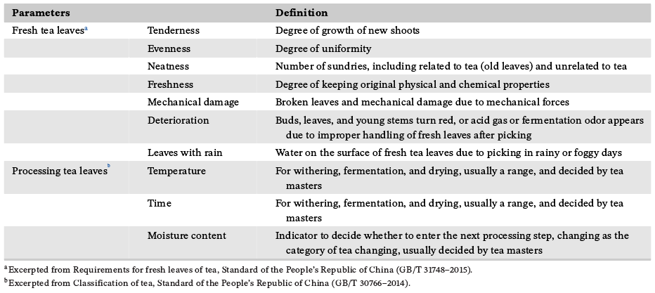表2:新鲜茶叶和加工茶叶参数