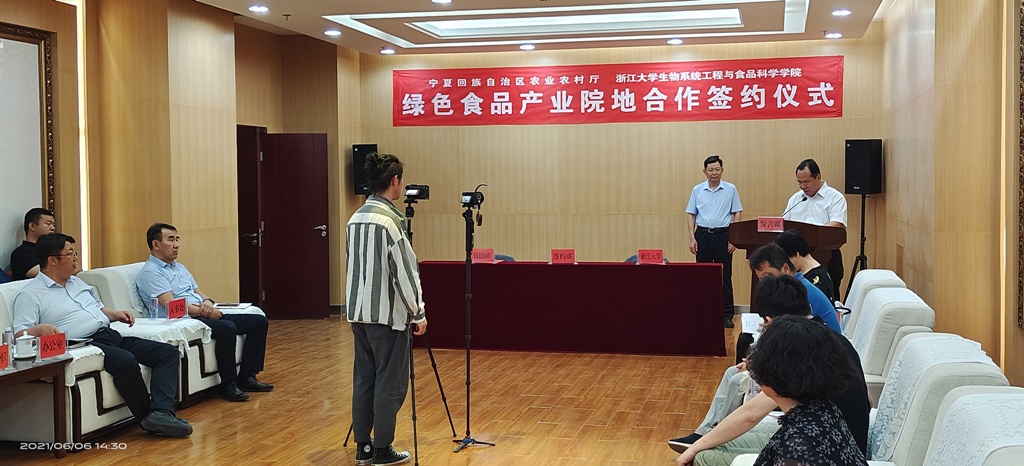 签约仪式由宁夏农业农村厅厅党组成员、副厅长晁向阳主持,宁夏农业农村厅副厅长王生林、浙江大学国内合作办公室主任林伟连分别在签约仪式上致辞。