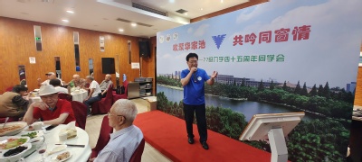 5月4-5日,春正盛绿荫浓,华家池、启真湖,湖水荡漾,鸟语花香,身穿蓝色或白色T恤的一拨拨人群,精神抖擞,或漫步在华家池畔,或穿行在林荫道上,欢声笑语,打破了“五一节”后校园难得的宁静。生工食品学院原农机系、环资学院原土化系77级近七十位校友与部分当年任课老师一起相聚在华家池、启真湖畔,共同纪念校友们入学45周年。