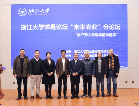 2023年12月22日,由浙江大学农业生命环境学部主办、生物系统工程与食品科学学院承办、动物科学学院协办的浙江大学求是论坛“未来农业”分论坛——“鱼虾无人智造与精准营养”会议暨浙大生工食品学院“现代农业与健康食品系列论坛”第37期在浙江大学紫金港校区观通楼报告厅举行。“未来农业”学术论坛由浙江大学农业生命环境学部开设,旨在深入推进学科交叉会聚,凝聚跨学科交叉人才队伍,集聚多学科优势力量。本次分论坛有浙江省水产推广总站副站长马文君、中国水产科学研究院南海水产研究所张家松研究员、浙江大学动物科学学院邵庆均教授、浙江大学环境与资源学院张志剑副教授、浙江大学生工食品学院叶章颖教授、冯凤琴教授等分别作报告,多名国内水产养殖相关研究领域专家及企业家以及来自浙江大学生工食品学院、环境与资源学院和动物科学学院的多名师生参会,会议由冯凤琴教授主持。