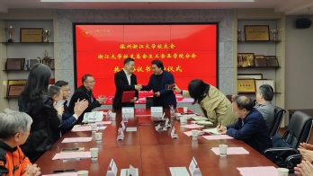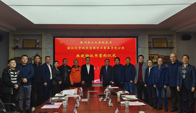 交流会上,温州浙江大学校友会会长胡亮,浙江大学校友会总会生工食品学院分会会长朱勇良分别代表地院校友会签署温州浙江大学校友会-校友总会生工食品学院分会共建协议。温州浙江大学校友会拓展型党支部书记、校友总会生工食品学院校友分会副会长池昌荣主持共建协议签署仪式。温州浙江大学校友会秘书长蒋利丹、副秘书长林祥烁,温州市食品行业协会粮食产业联合会会长、温州快鹿集团董事长李明,浙江小智机器人科技有限公司总经理诸捷凯等企业家校友,校友总会生工食品学院分会常务副会长、学院院长刘鹰,会副会长应铁进、李建平、李忠先、林国平,秘书长邹黎明、副秘书长郝云彬等出席并见证共建协议签约。