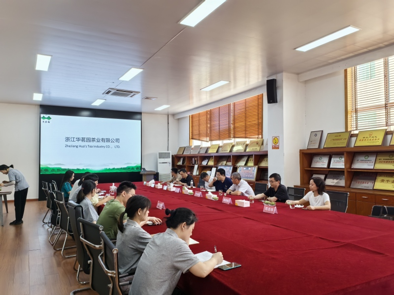 李金林一行首站来到浙江华茗园茶业有限公司,这是一家集茶叶种植、生产、加工、销售、产品研发于一体的茶叶农业产业化国家级农业龙头企业,主要从事茶叶种植以及传统名优茶、饮料茶、袋泡茶、抹茶、固体饮料的加工和销售。华茗园公司副总经理胡美娟陪同调研交流。在交流过程中,老师们详细了解了企业的生产、研发、销售等情况。针对华茗园公司提出的提高茶叶生产信息化、数字化、智能化水平的需求,双方就茶叶包装设备升级改造,实现茶叶产品自动化包装;利用信息化和数字化技术,实现茶叶产品溯源、茶叶风味智能化检测、茶叶农残快速检测、智慧茶园管理、生产过程数字化管理等,进行了深入的讨论。双方计划进一步交流沟通,明确工作内容,以项目形式,开展相应的工作。