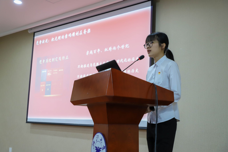 他们深入阐释党章的核心要义。刘晶栎结合党章守护者张人亚的感人故事,详细讲述了党章的历史发展足迹,带领同学们深入学习在时代潮流中党章的变化和不变的核心价值。刘玉琪则重点阐述了党章的发展历程与总纲的精髓,强调了党章在党的建设中的重要作用,并引导同学们自觉学习遵守贯彻党章,不断提升自身党性修养。