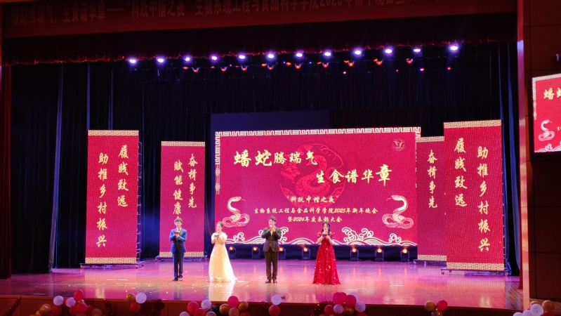智能农业装备研究所百人计划研究员李冬阳首先介绍了两位嘉宾——詹先发董事长与柳静总经理,简单介绍了北京科跃中楷捐赠公益事业的情况以及两位嘉宾捐赠生工食品学院人才培养事业的热忱意愿。学院院长刘鹰代表学院全体师生对两位嘉宾寒风中不远千里来到杭州出席生工食品学院2025年新年晚会暨2024年度表彰大会表示诚挚的欢迎和衷心的感谢!代表学院由衷钦佩科跃中楷在詹先发董事长、柳静总经理的带领下取得的骄人发展,由衷钦佩两位嘉宾在企业取得发展的同时,勿忘回馈社会,积极支持社会公益事业,给千家万户、莘莘学子送去温暖与支持的博大情怀与社会责任担当,诚挚感谢詹先发、柳静伉俪慷慨捐赠支持生工食品学院人才培养事业。随后,刘鹰院长向客人们简要介绍了生工食品学院的历史沿革,学院学科建设与学术地位,教育教学与人才培养,科学研究与科技成果、社会服务与成果转化等方面的情况,期待双方在科学技术及人才培养等领域开展合作,赋能院企双方加快发展。