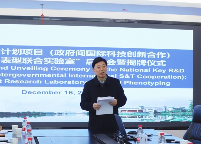 20241216日,岑海燕教授领衔主持的国家重点研发计划项目(政府间国际科技创新合作)中英植物表型联合实验室启动会暨揭牌仪式于浙江大学紫金港校区农生环大楼D630举行。浙江大学科学技术研究院基础研究与海外项目部陈光弟部长、浙江大学数字农业农村研究中心主任何勇教授、生工食品学院副院长岑海燕教授、英国国立农业植物研究所(剑桥作物研究中心)Ji Zhou教授、袁隆平农业高科技股份有限公司总经理杨广研究员等参加了启动会和揭牌仪式。此次会议由何勇教授主持。