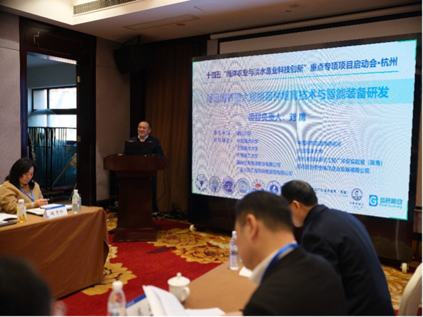 2025年1月14日至15日,由浙江大学刘鹰教授牵头承担的国家重点研发计划“海洋农业与淡水渔业科技创新”重点专项“深远海养殖大规格苗种培育技术与智能装备研发”项目启动会暨实施方案论证会在杭州顺利召开。农业农村部科技发展中心项目一处许璇、浙江省农业农村厅副处长薛惠明、浙江大学科学技术研究院副院长程术希等相关单位领导出席,以杨红生研究员及徐皓研究员为代表的项目责任专家及咨询专家莅临指导,含项目/课题负责人及骨干人员等共计60余人参会。