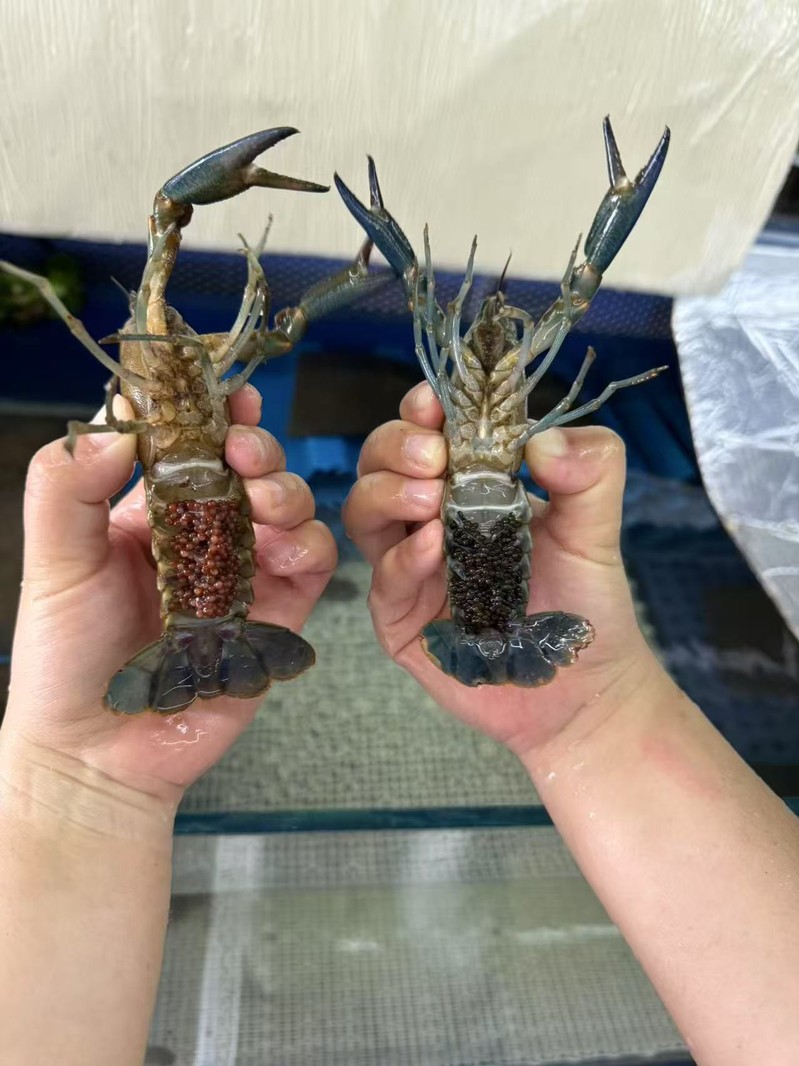 项目组在杭州市余杭智慧渔业研究中心基地建立了优良的澳洲蓝龙虾亲虾繁育和虾苗培育循环水设施,系统地研究了亲虾循环水培育系统不同环境因子对澳洲蓝龙虾受精抱卵率的影响,其中抱卵率最高达到71.42%,证实了循环水养殖系统在澳洲蓝龙虾亲虾培育过程中具有水质稳定、系统安全稳定可靠等特点。所培育幼苗存活率高(接近90%)、生长状况良好,经过15天的育苗,平均体长达到2.51cm,体质量达到0.70g