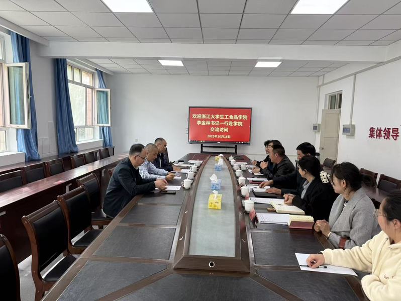 10月17日,李金林书记一行赴新疆理工学院调研座谈。新疆理工学院食品科学与工程学院党总支副书记、副院长裴龙英及学院教师出席座谈会。双方就党建共建、人才队伍建设、科技攻关与创新研究、产业服务等方面深化合作进行深入探讨,并签署了战略合作协议。李金林指出,新疆阿克苏地区有很多农产品优势资源,期待双方发挥各自优势,全力服务国家战略需求,积极参与新疆特色产业集群发展等重点工作,为南疆经济社会发展作出新的更大的贡献。调研活动中,罗自生教授应邀为新疆理工学院师生作《浆果营养健康与供应品质调控研究》学术报告。