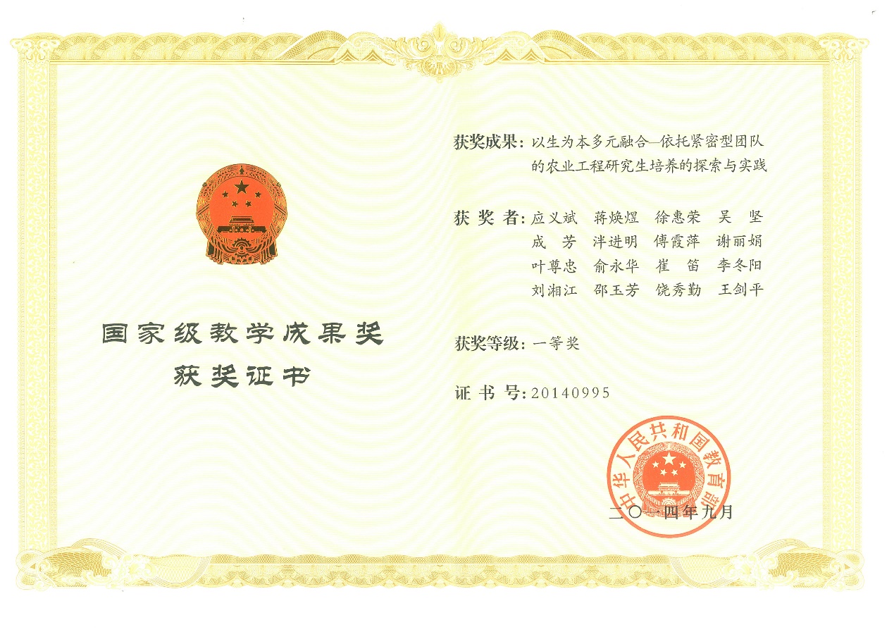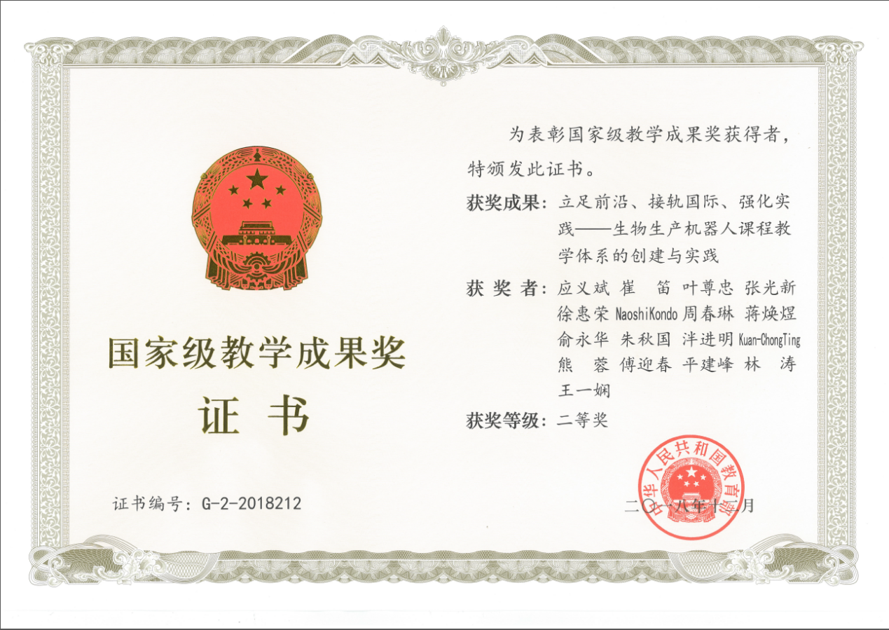 全面推进课程教学体系、教学方法、教书育人模式等的改革与创新,成果显著。获国家精品课程3门、国家一流课程3门。2009年“多元融合 国际化拓展—生物系统工程专业创建与复合型创新人才培养的实践”荣获国家级教学成果一等奖,2018年“立足前沿 接轨国际 强化实践--生物生产机器人课程教学体系的创建与实践”荣获国家级教学成果二等奖,2021年获浙江省教学成果奖特等奖1项、一等奖1项、二等奖1项,2023年“螺旋递进、多维联动、能力为重—食品保藏课程群20年教学改革与实践”荣获国家级教学成果二等奖,显著推动了学生培养质量的全面提升。