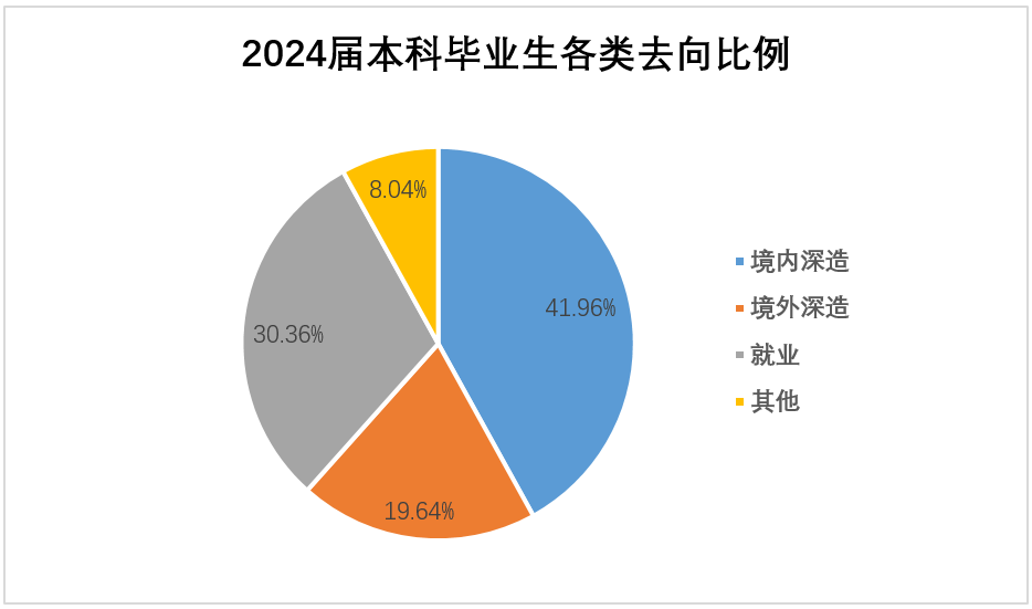学院本科毕业生出口质量不断提升。近年来毕业生去向主要为赴斯坦福大学、哈佛大学、剑桥大学、耶鲁大学、帝国理工学院、康奈尔大学、加州大学伯克利分校、哥伦比亚大学等海外名校深造,赴清华大学、北京大学、浙江大学等知名高校深造,赴江西省委组织部、安徽省委组织部等基层选调,赴南方电网、华为、海康威视、娃哈哈集团等知名企业就业等。2024届本科毕业生共计112人,其中赴境内深造人数为47,占比41.96%;境外深造人数为22,占比19.64%;就业人数为34,占比30.36%;其他人数为9,占比8.04%。