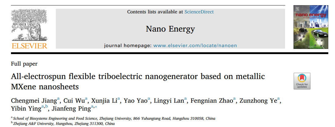 The first author of this study was Jiang Chengmei, a master'scandidate in Prof. Ping Jianfeng’s group of Zhejiang University. Wu Cui, a PhDstudent in the research group, assisted in the relevant work of dielectricwetting in this study.