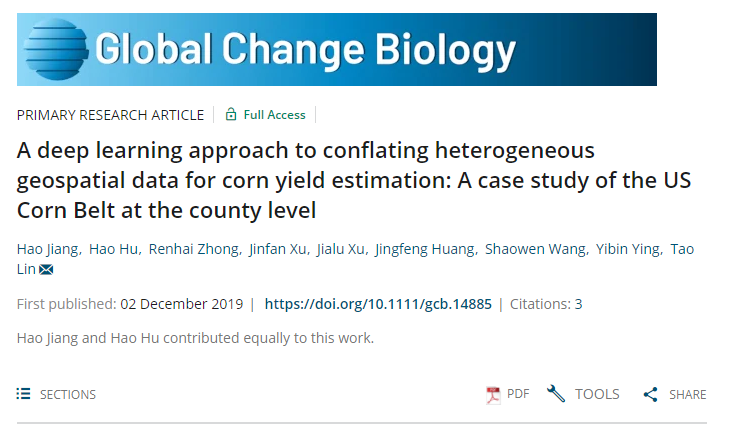 Recently, Prof. Lintao's Team Published a Research Paper on Global Change Biology, which is one of the top journals in the area of Agricultural Engineeirng, with 5-year impact factor of 10.171.