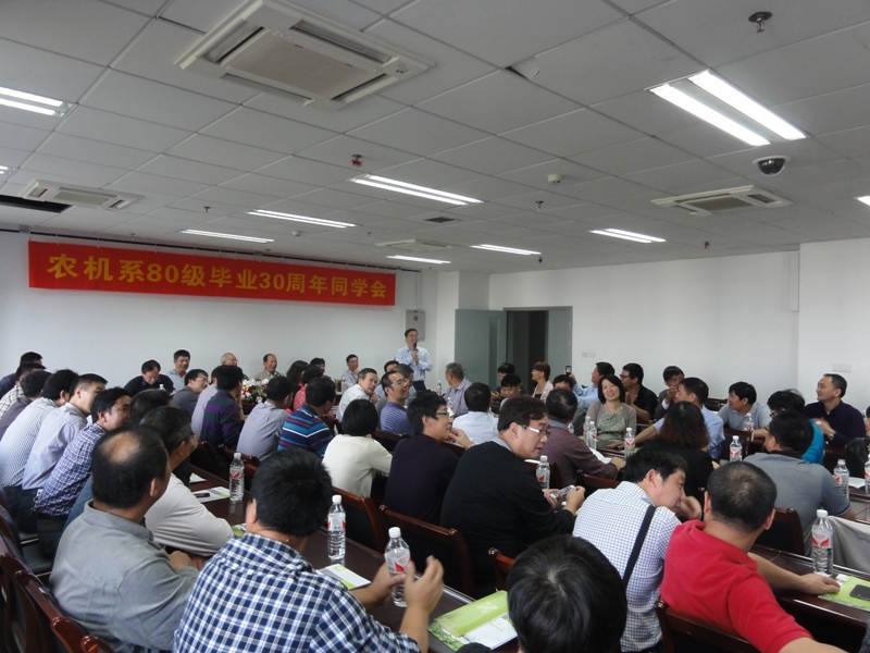 10月25日上午,学院报告厅座无虚席,农机系80级毕业30周年同学会正在这里热烈进行。60余位同学及部分当年任课老师在这里亲切相聚,共叙同学、师生情谊。吴士澌、奚文斌、胡惠珍、詹建斌、钱青及正在国内访问的美国华盛顿州立大学教授张勤等当年任课教师出席了同学会。