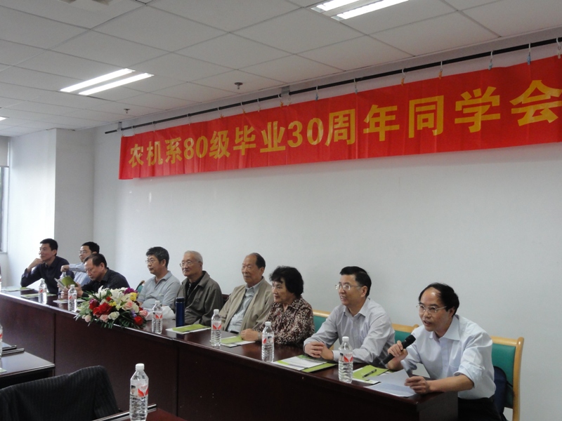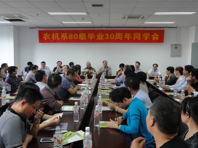 10月25日上午,学院报告厅座无虚席,农机系80级毕业30周年同学会正在这里热烈进行。60余位同学及部分当年任课老师在这里亲切相聚,共叙同学、师生情谊。吴士澌、奚文斌、胡惠珍、詹建斌、钱青及正在国内访问的美国华盛顿州立大学教授张勤等当年任课教师出席了同学会。